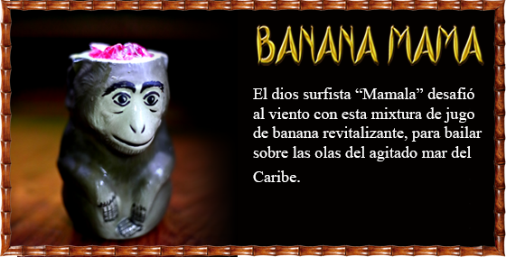 • Piña, Plátano, Coco, Granadina, Ron de Coco