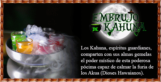 Embrujo De Kahuna 15 diciembre, 2025 No Comments Verde-Kiwi, Manzana, Tequila/ Naranja- Maracuyá, Mango, CuraçaoAzul- Lima, Curaçao Azul, Vodka/ Rojo- Fresa, Maracuyá, PassoaMorado- Lima, Mora, Vodka/ Rosa- Lima, Bubble Gum, Ron6 CHUPITOS PARA CONPARTIRSOLO CON ALCOHOLIndividual 11 €